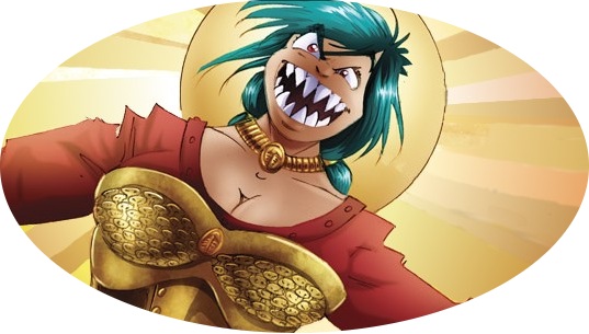 Not only is the fabulous Mamma Gkika one of only two female Jägers seen so far, she is also one of the Jägergenerals.[1] It's to her that the wild Jägers Jenka, Dimo, Maxim, and Oggie take the injured Gil in order to get him patched up as quickly as possible following his victory ✣ over the invading war stompers.