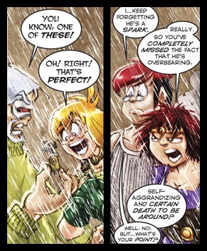 The common perception of the Spark is personified by most of the main characters of Girl Genius (Agatha, Tarvek, Gil, the Baron) - mad geniuses whose genius and madness have shaped the world. This is not always the case.[6]