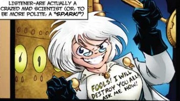 A Spark is a mad scientist. The term comes from The Spark, short for "the spark of genius", the mental attribute which is the sine qua non of a mad scientist.