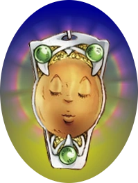 Another oft-remarked piece of Zeetha's equipment is her headband, which features a circular face ornament complementing the two on her sword harness. The face on the headband changes expression to match Zeetha's own, even when she's not wearing it ✣ ; since this is now part of the canon, it can be assumed to be some sort of sparky technology (and not just an artist's running joke, as was originally suspected). It is currently in the possession of Higgs.